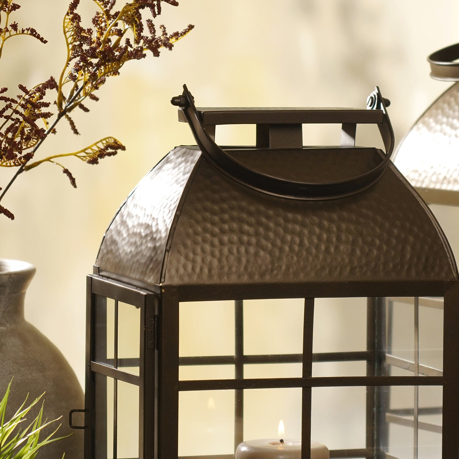 This brown antique lantern comes with glass panelling and offers a rustic yet elegant charm. Ideal for indoor or outdoor spaces, it creates a warm and inviting ambience with candlelight.